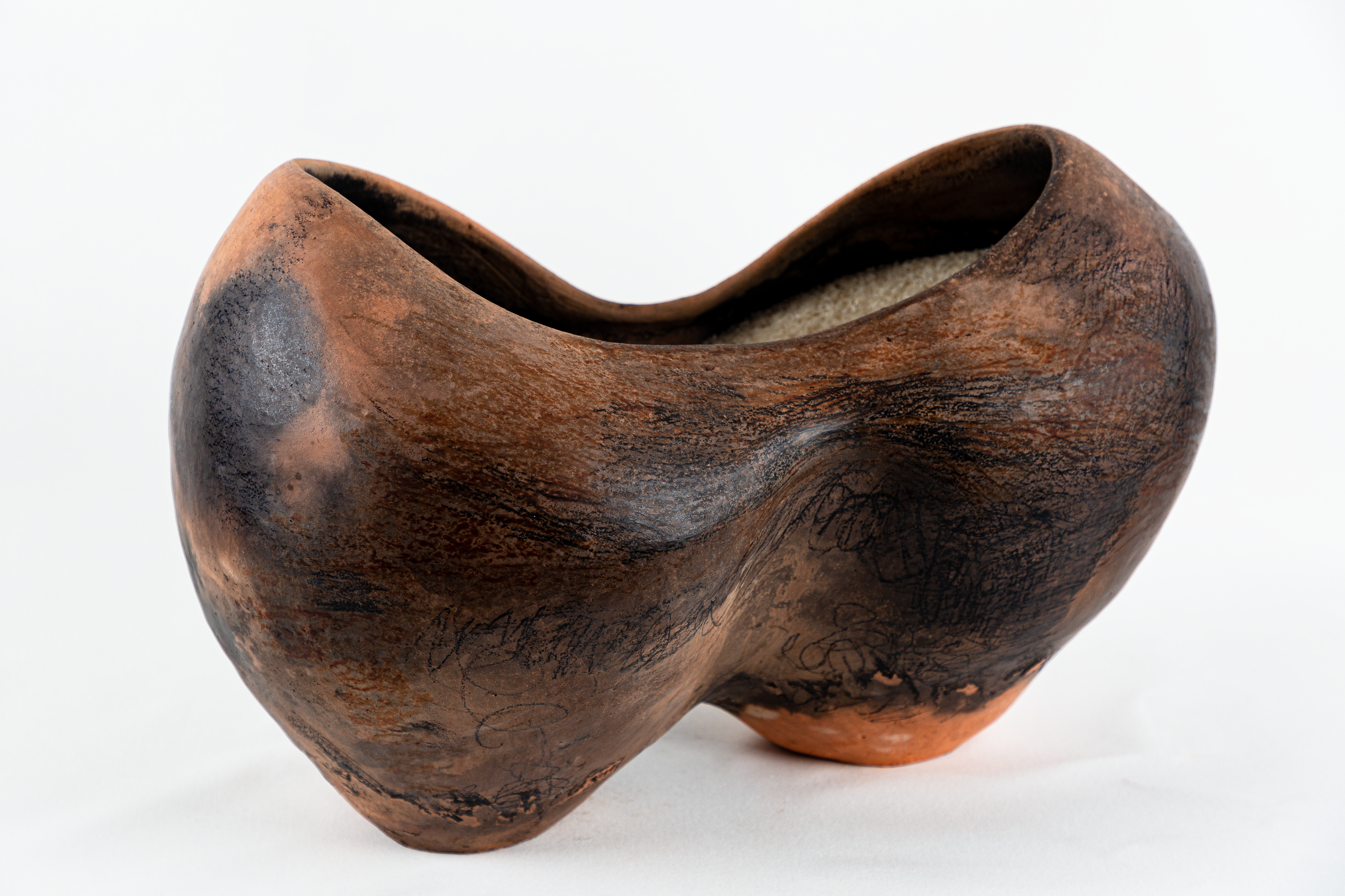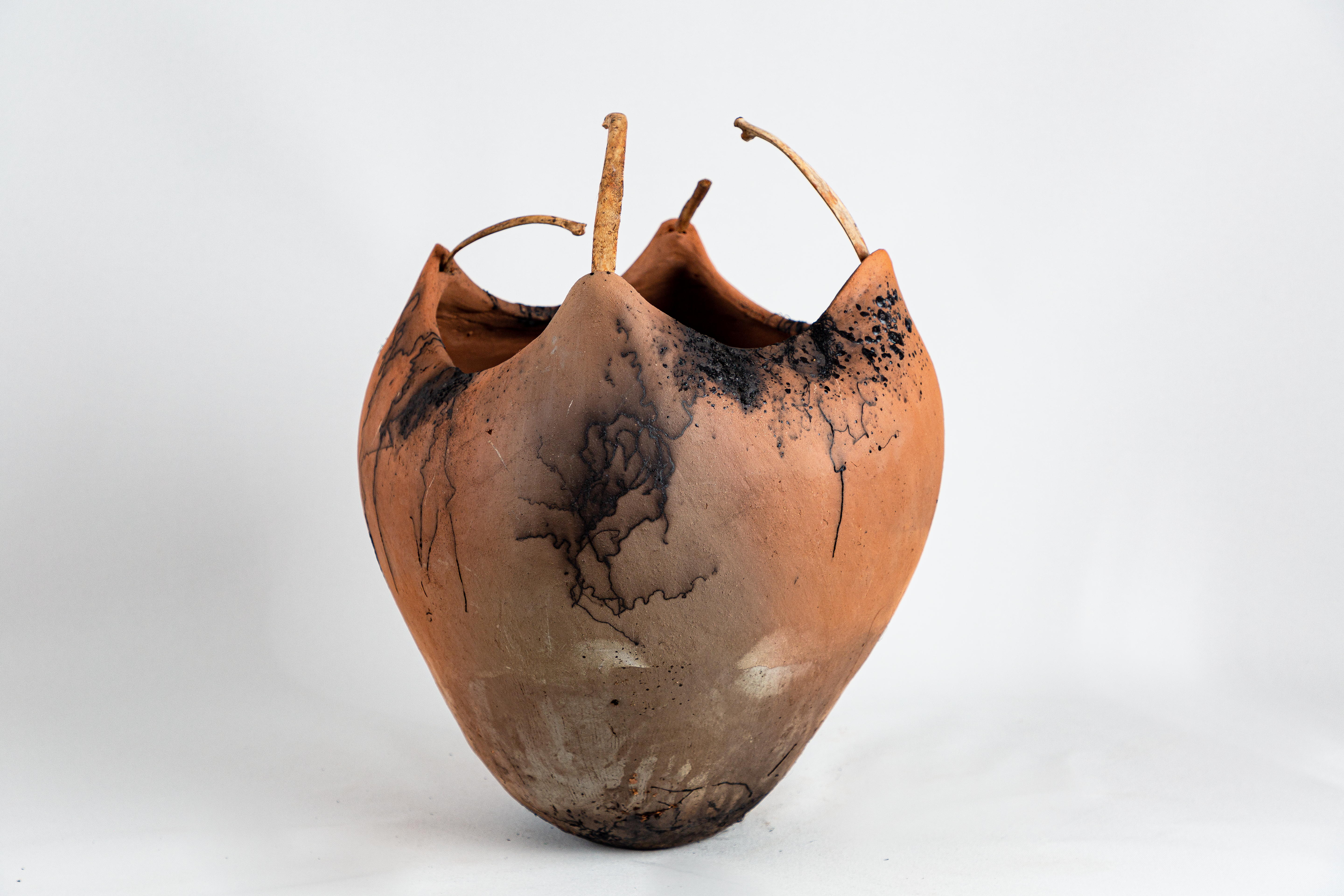 soil from True Blue Plantation (Fort Motte, South Carolina), animal bones, human hair, horse hair, sugar, Raku-fired